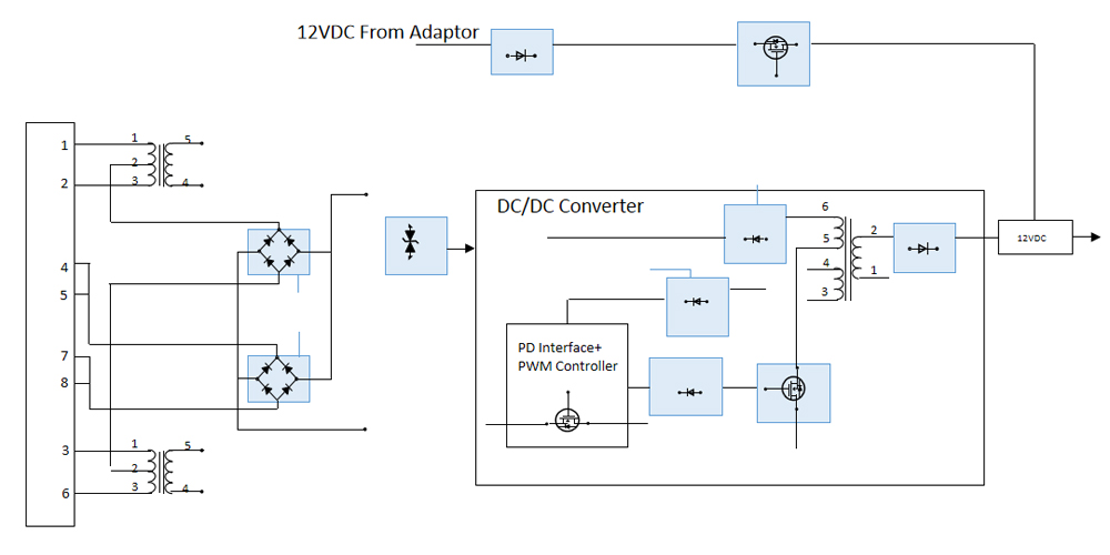 安防 以太網供電協議(PoE) 推出多年,提升了可通過雙絞以太網線傳輸的最大功率。促使了新 POE 應用追求更高的功率密度。揚杰科技為視頻監控產品POE電源電路應用提供產品與解決方案,可以在控制溫升基礎上提高整機效率。