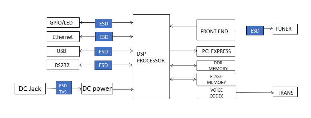 通信 揚杰科技為通訊端口應用提供解決方案,在機頂盒和Cable Modem等應用中,TVS、肖特基等二極管功率損耗低,效率高。